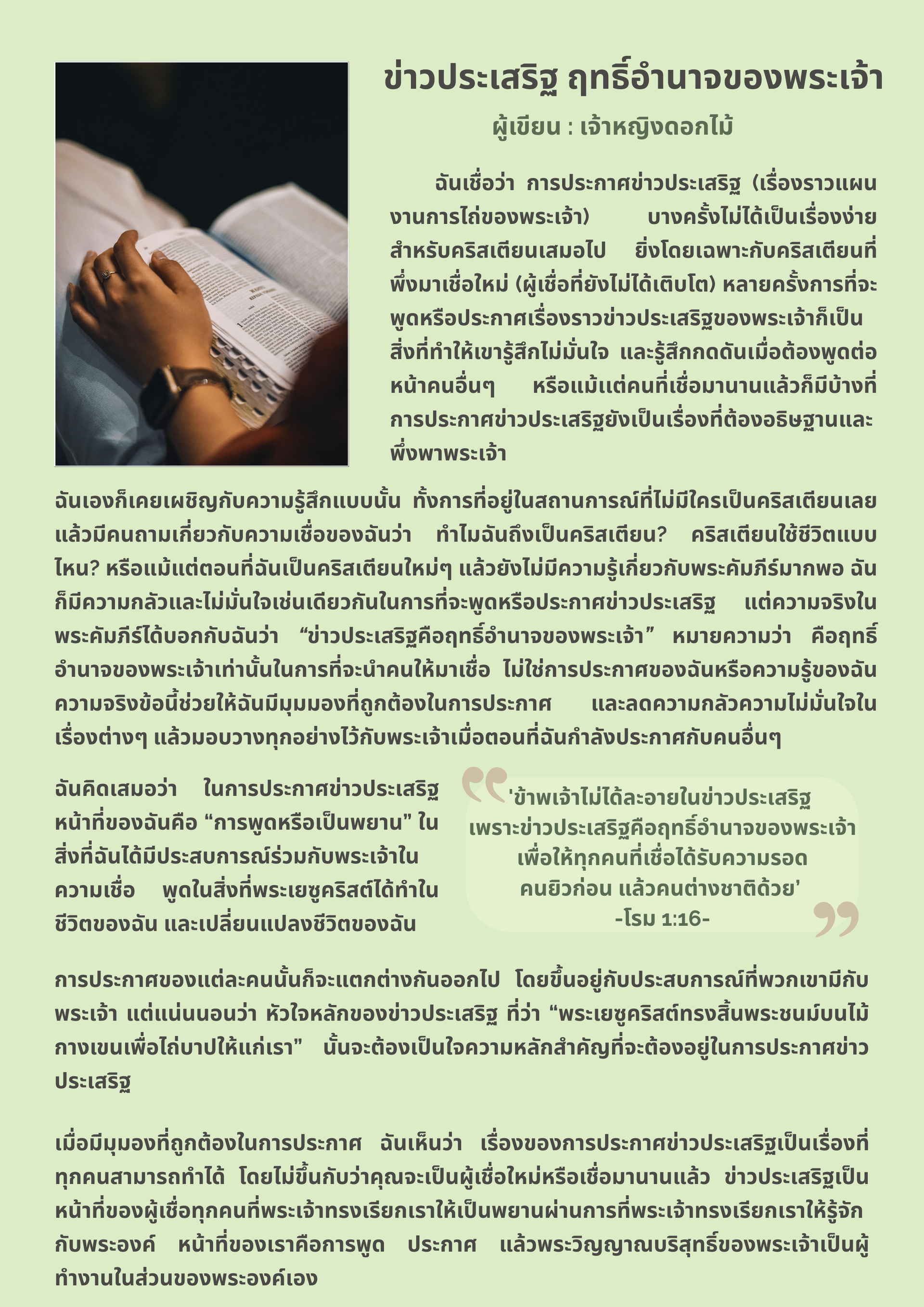“พระองค์ทรงเป็นพระเจ้า ผู้ทรงเห็นข้าพเจ้า” (ปฐมกาล 16:13) เพราะพระองค์ทอดพระเนตรเห็นความทุกข์ของนาง และทรงเสด็จมาพบเพื่อปลอบโยนและหนุนใจนางในยามที่นางรู้สึกโดดเดี่ยวและสิ้นหวัง พระเจ้าทรงเป็นพระเจ้าที่ทรงมองเห็น และไม่ใช่การ มองเห็น ที่หมายถึง การเห็นว่าเรากําลังทุกข์ใจเพียงเท่านั้น แต่เป็นการ “เห็น” ข้างในหัวใจของเรา